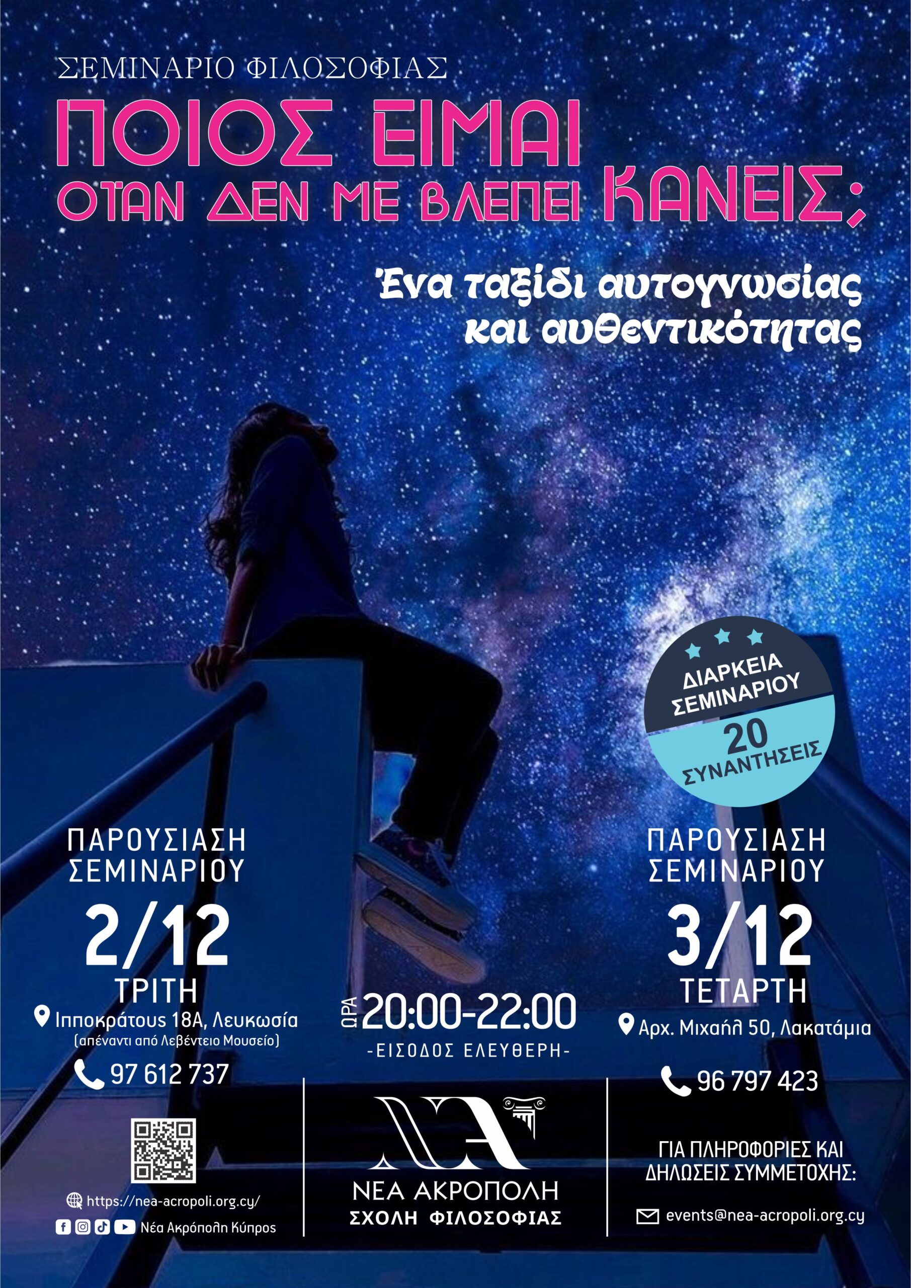 #ΝέαΑκρόποληΚύπρου#Φιλοσοφία #Αυτογνωσία #Αυθεντικότητα#Σεμινάριο #ΠοιοςΕίμαι #Λευκωσία #Λακατάμια #ΦιλοσοφίαΣτηνΠράξη