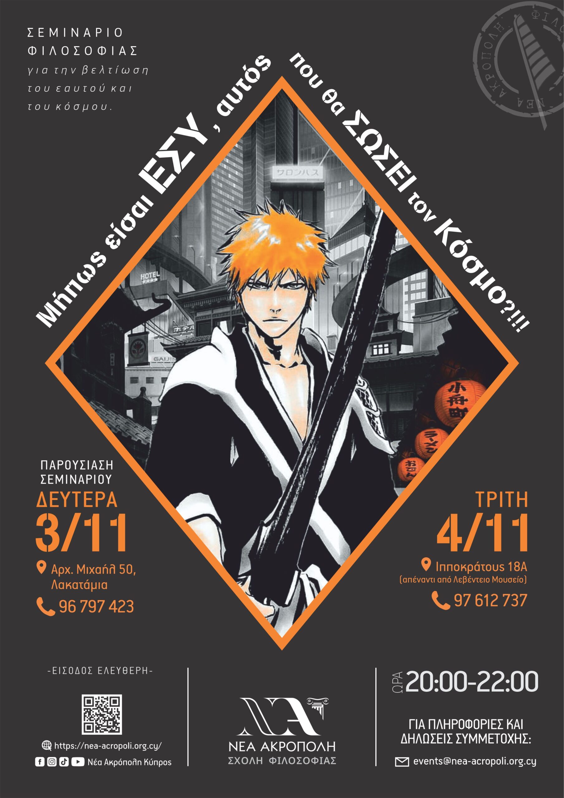 Σεμινάριο Φιλοσοφίας: Για τη Βελτίωση του Εαυτού και του Κόσμου November 3, 2025 8:00 pm Λευκωσία Αρχ. Μιχαήλ 50, Λακατάμια
