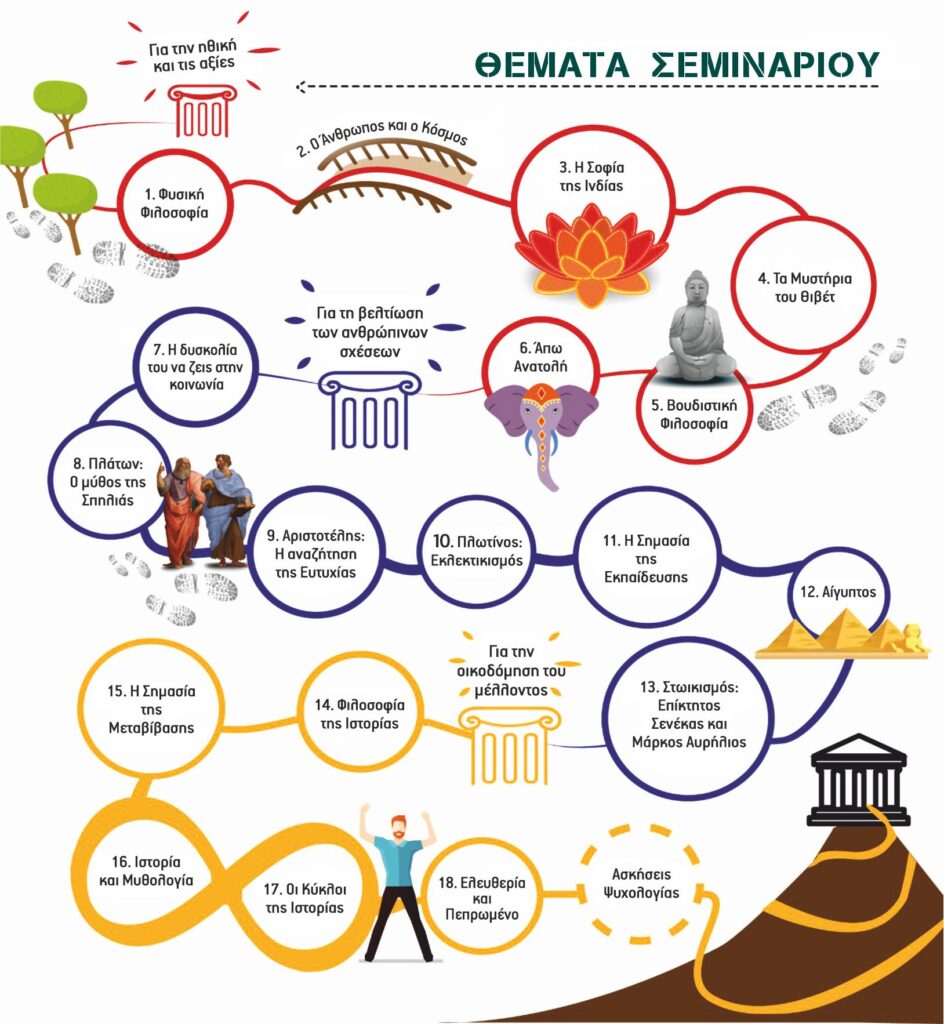 • Καθ’ όλη τη διάρκεια του σεμιναρίου προτείνονται χρήσιμες ασκήσεις για την ανάπτυξη των φυσικών μας ικανοτήτων όπως προσοχή, συγκέντρωση, μνήμη, φαντασία, έλεγχος των συναισθηματικών διεργασιών, βούληση, κ.λπ., που αντλούνται από τις παραδόσεις και τα θέματα που προσεγγίζονται στα μαθήματα.